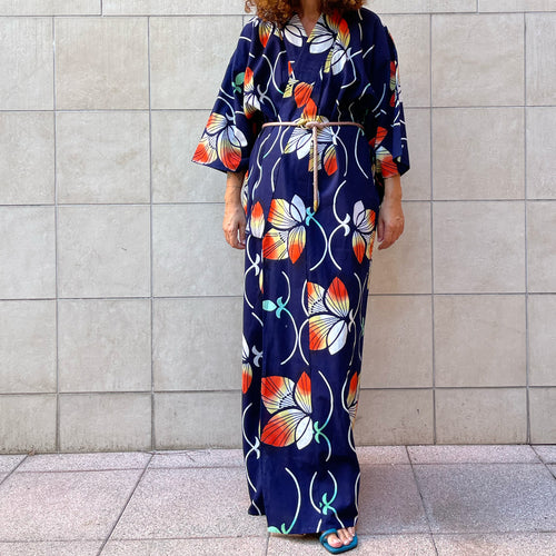 Yutaka blu e bianca con stampe VENTAGLIO 50s acquistata Kyoto