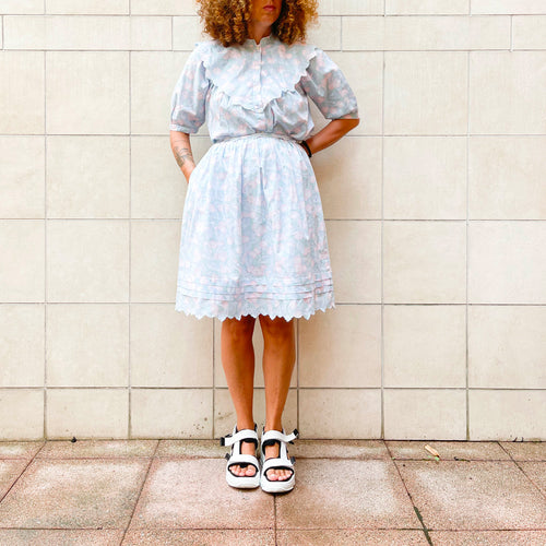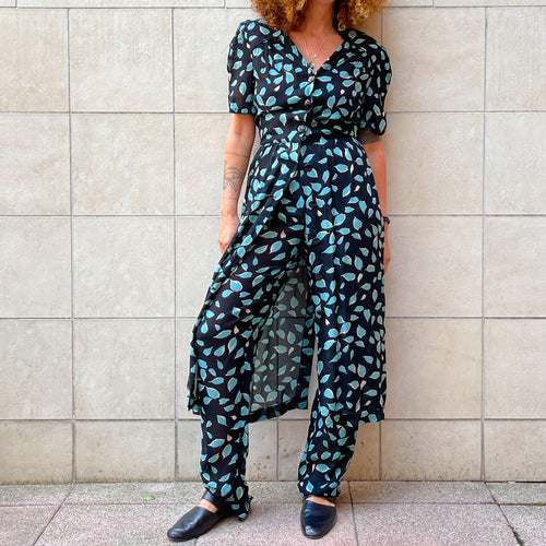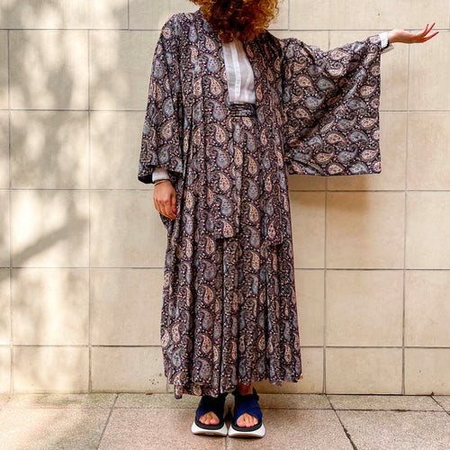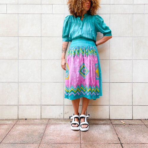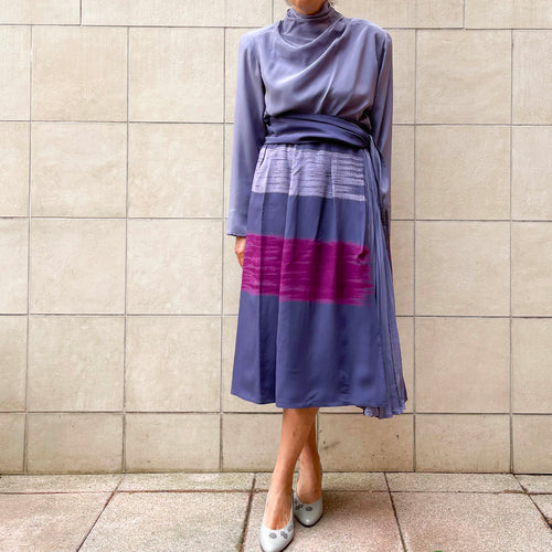 Completo top, blusa e gonna in chiffon di seta, 70s