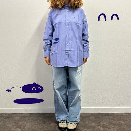 Camicia celeste MAKICHA Serigrafia a mano di Gigi Tarantola