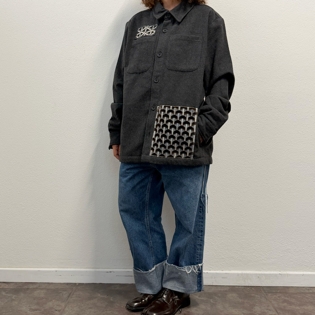 Camicia Work con inserti di tappezzeria vintage acquistati da un noto negozio storico Milanese .