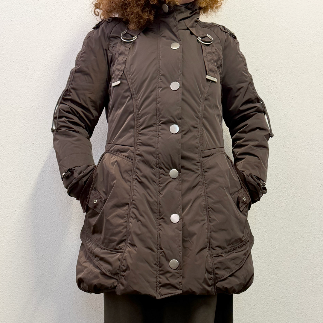 Dettagli ricercati come il collo in velluto e inserti in velluto e il cappuccio estraibile aggiungono versatilità e un tocco luxury tipico del brand.