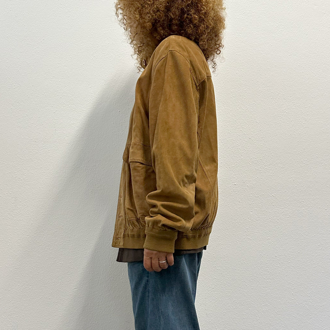 Bellissimo bomber Mabrun degli anni ’90, realizzato in pelle scamosciata di alta qualità, dal colore marrone medio chiaro elegante e caldo. Modello over che veste una taglia 52 ma è comodo fino a 46. Perfetto per gli amanti del vintage autentico: il capo presenta segni minimi dovuti all’uso o all’invecchiamento, ma è in ottime condizioni generali. Ideale per outfit casual d’impatto, da abbinare a jeans, pantaloni in pelle o anche sopra abiti per contrasto.
