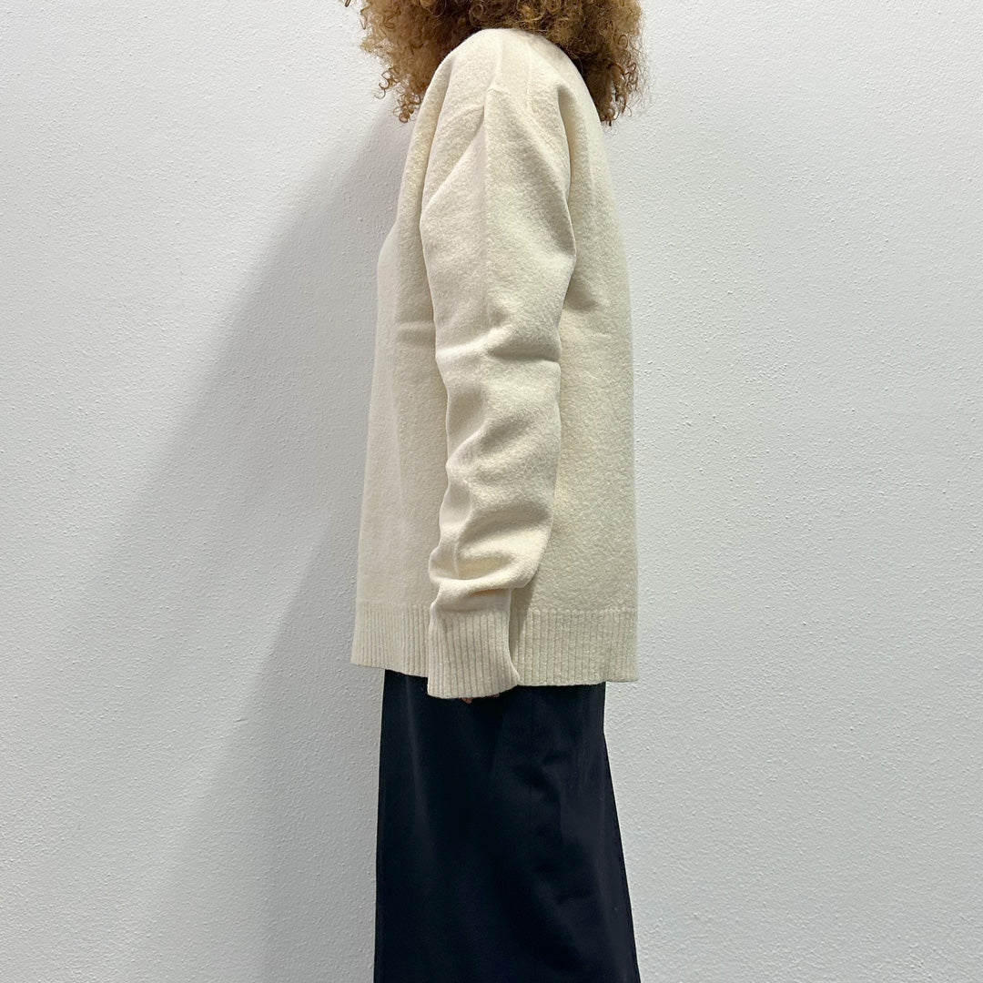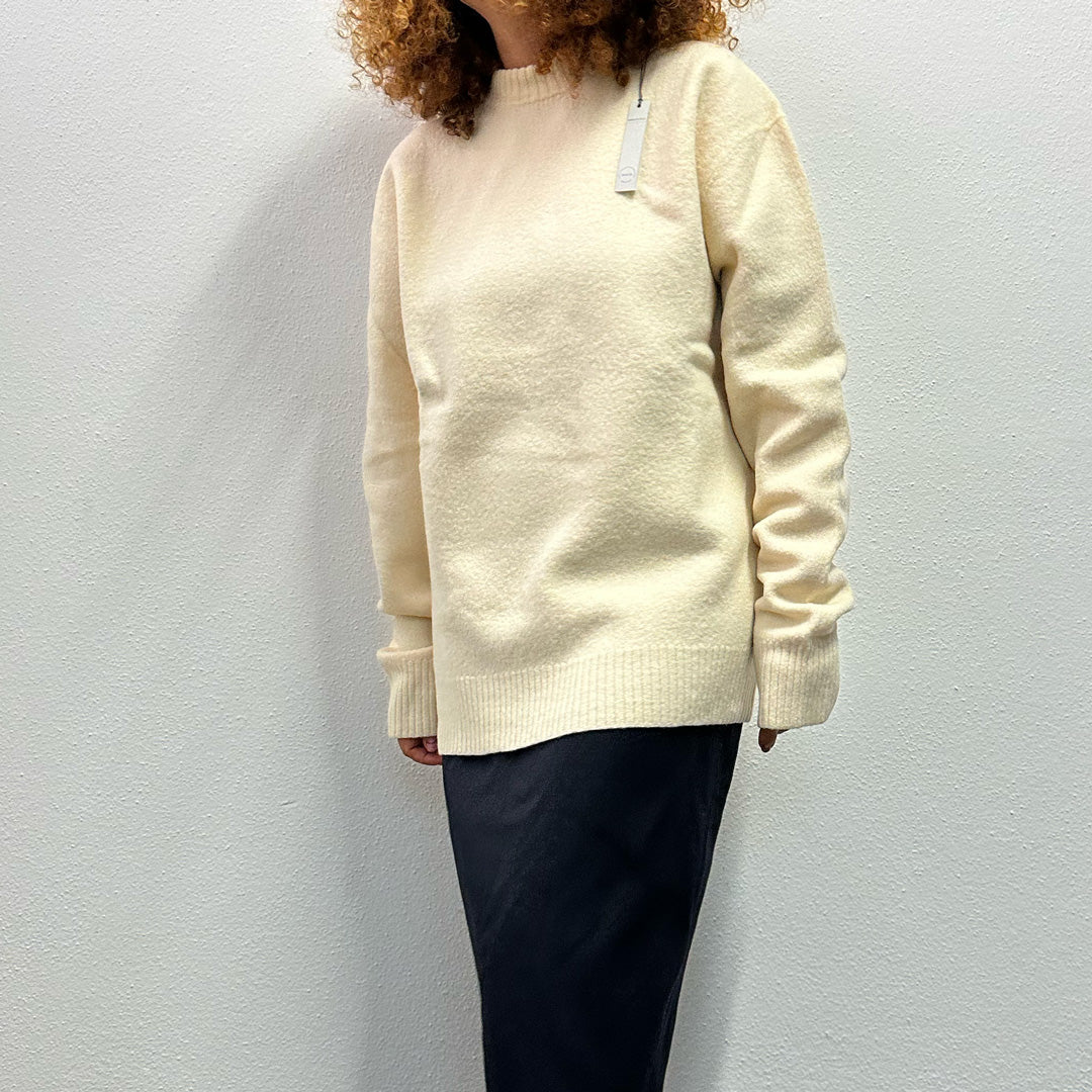 Maglione lana follata bianco ,100% lana made in Italy , A giro collo , peso medio . tg L . Deadstock Nuovo mai stato usato senza etichetta.
