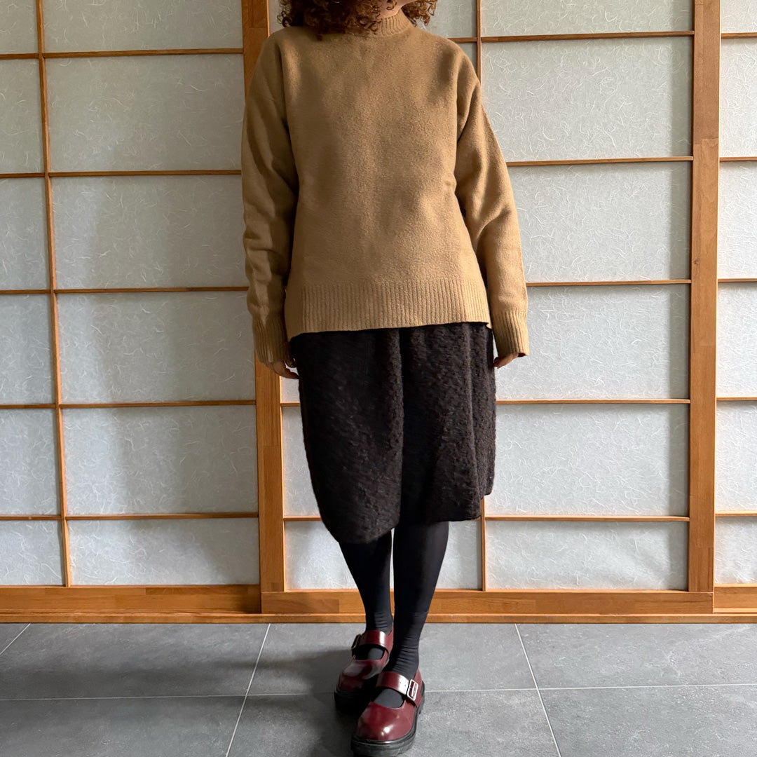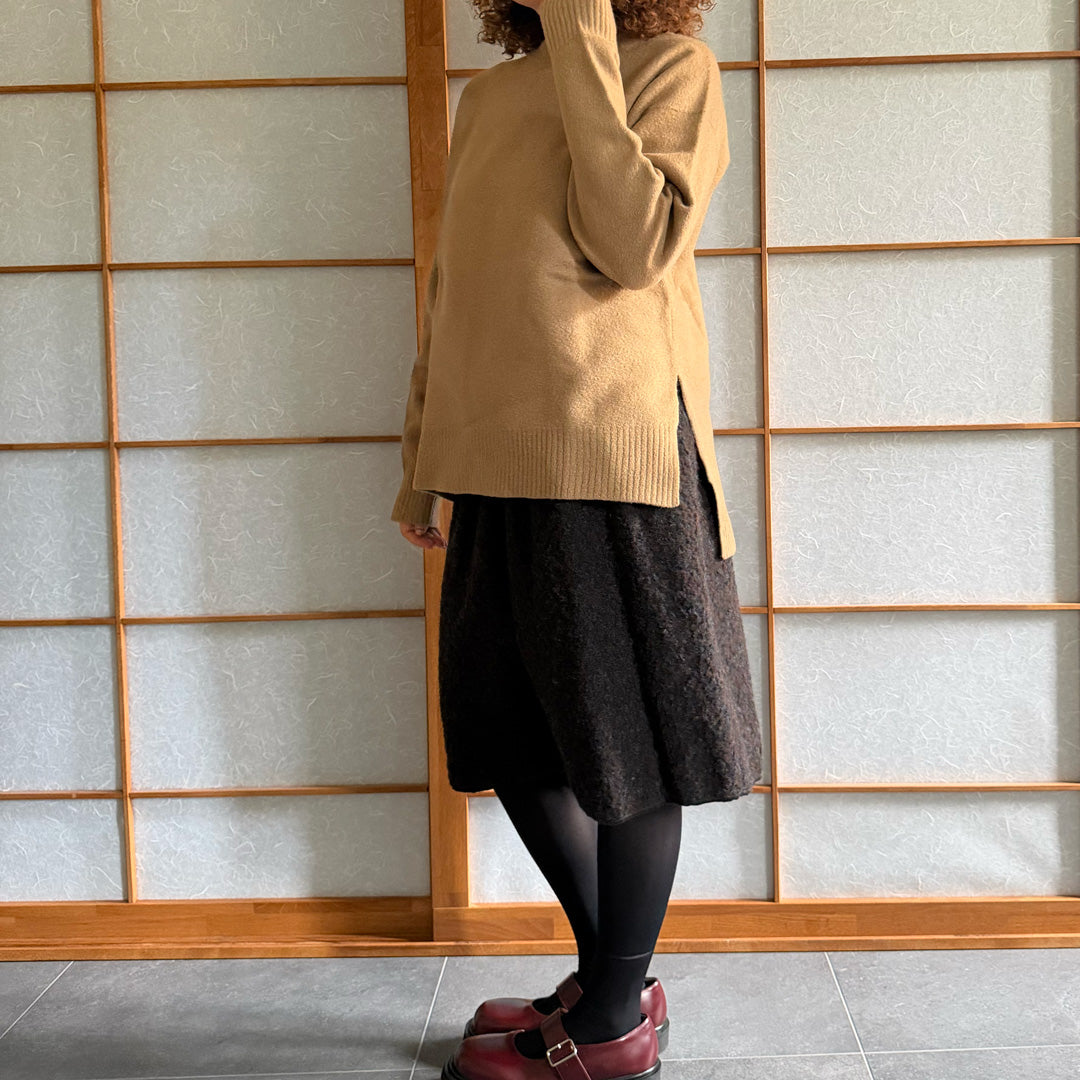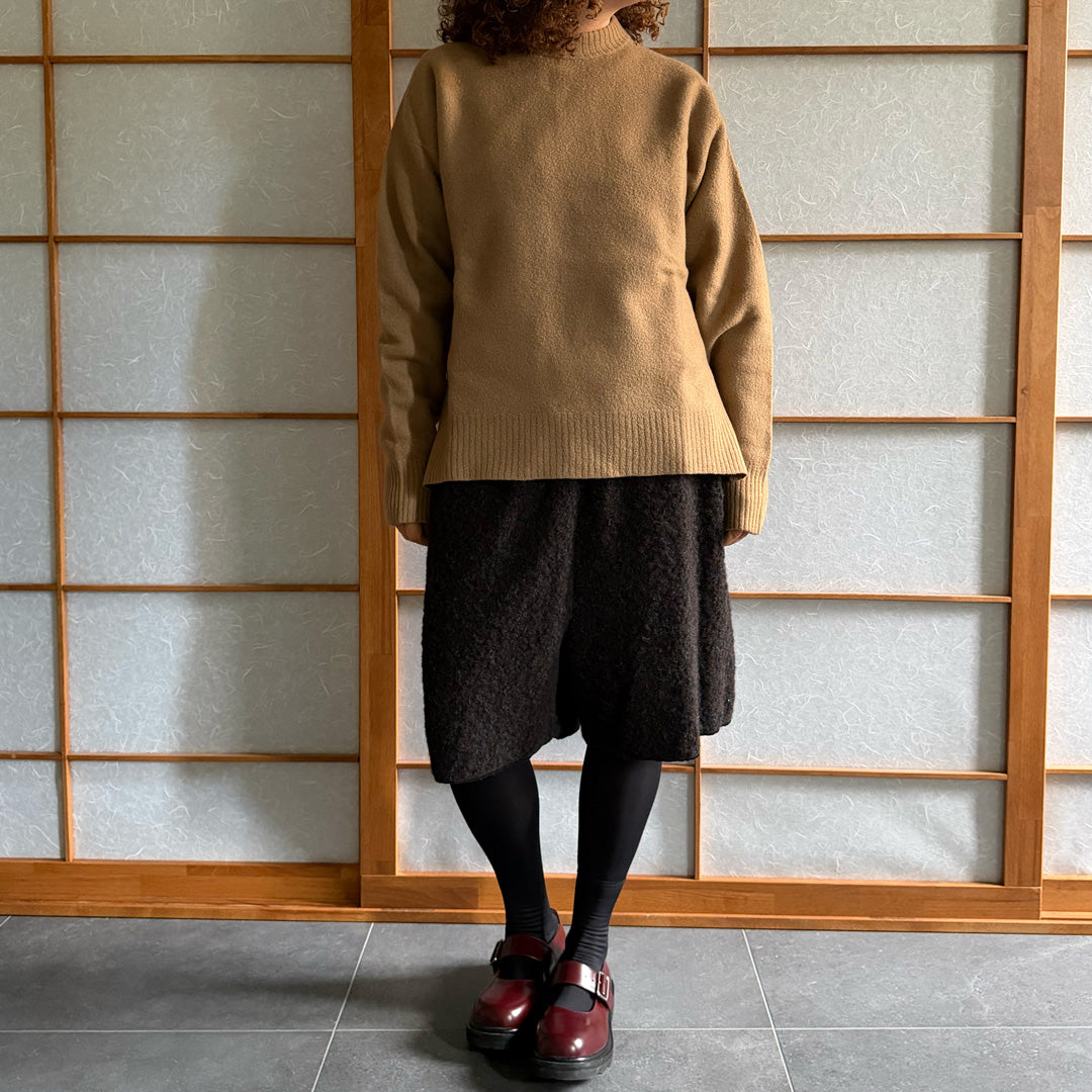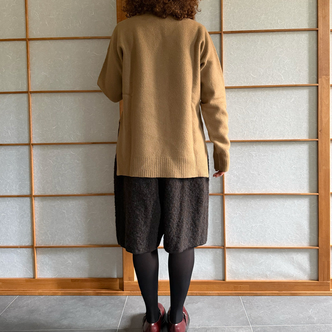 Maglione lana follata color cammello ,100% lana made in Italy , girocollo peso medio , con spacchi laterali tg S. Deadstock Nuovo mai stato usato senza etichetta.