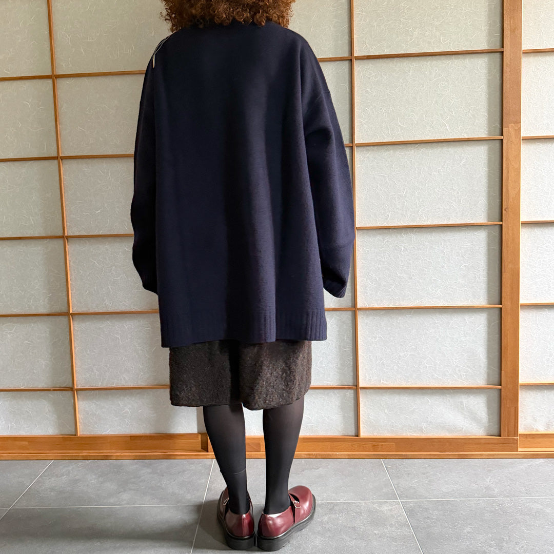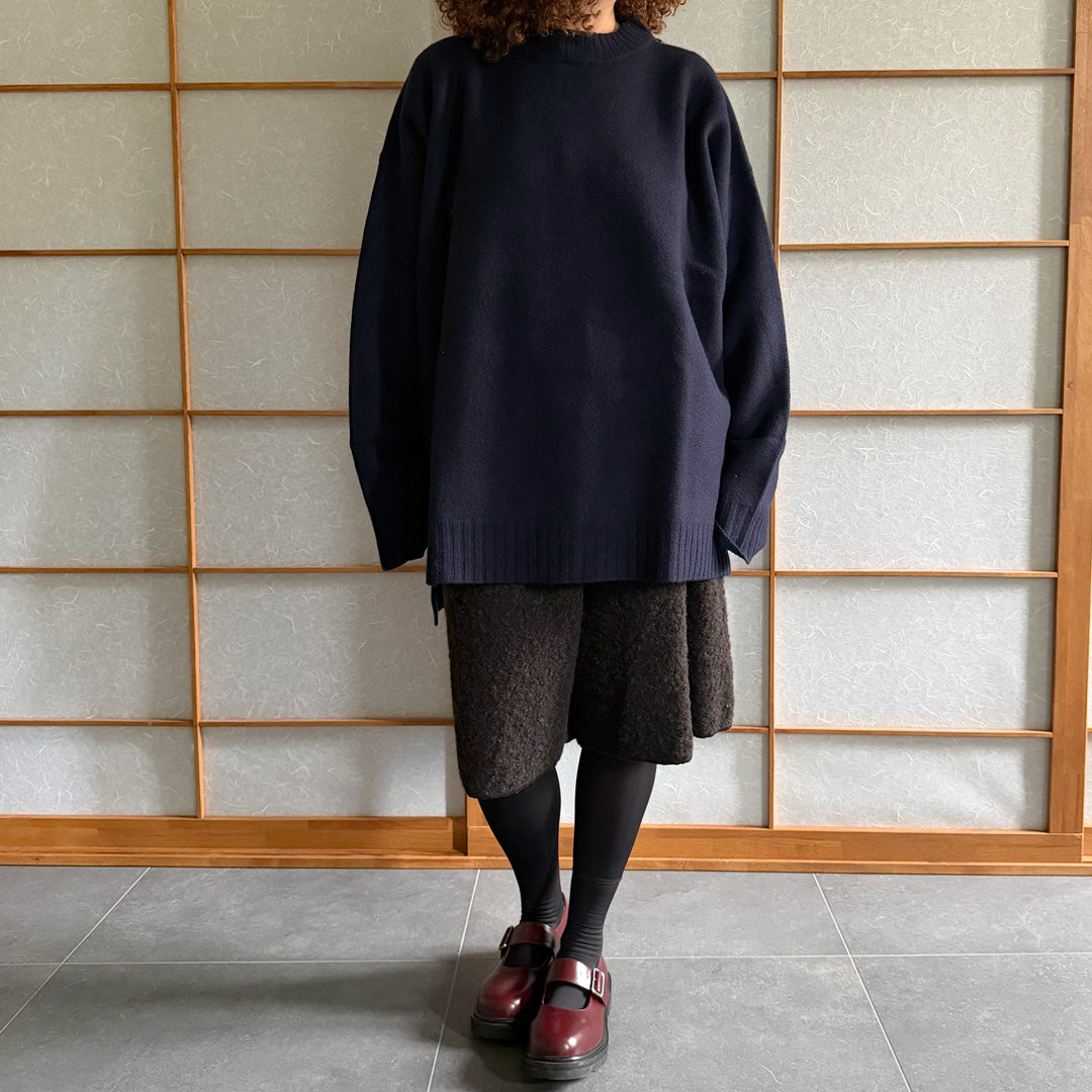 Maglione lana follata color navy ,100% lana made in Italy,con spacchi laterali . A giro collo , peso medio . tgL . Deadstock Nuovo mai stato usato senza etichetta.