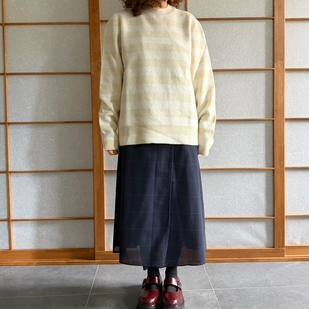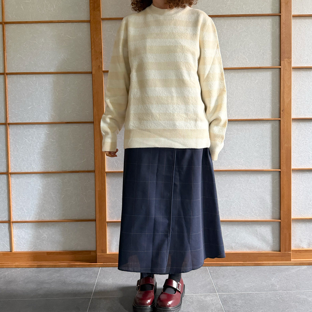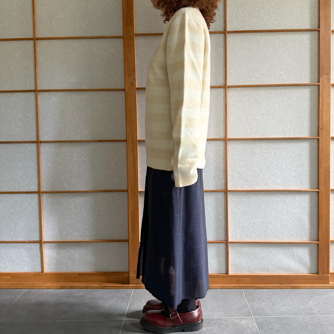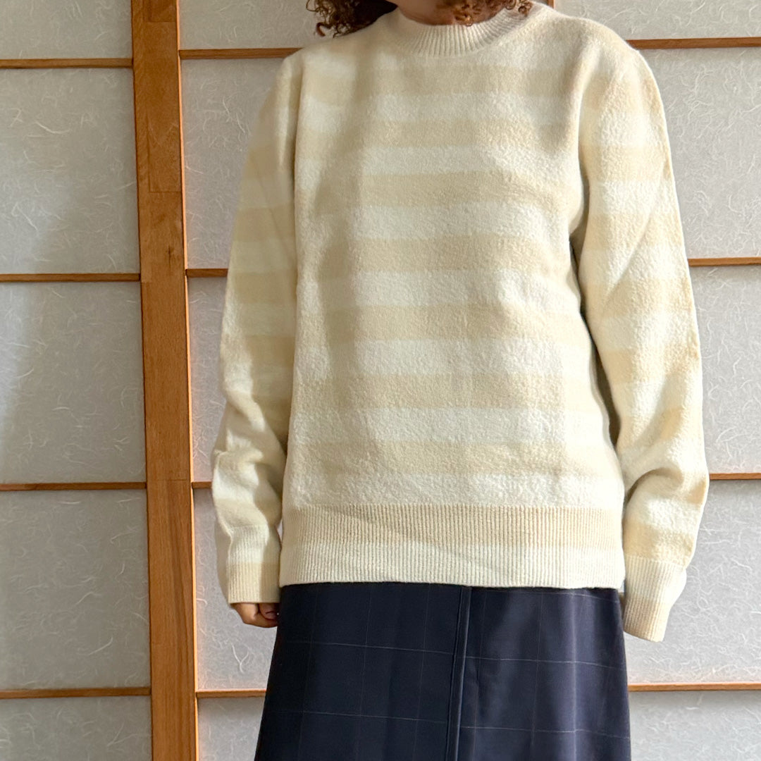 Maglione lana follata a righe bianco panna e nude pallido ,100% lana made in Italy, girocollo , peso medio . tg M . Deadstock Nuovo mai stato usato senza etichetta.