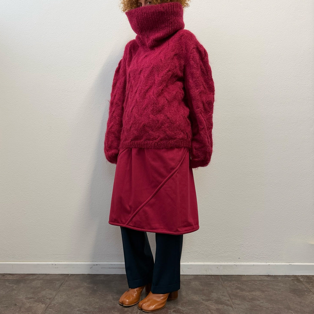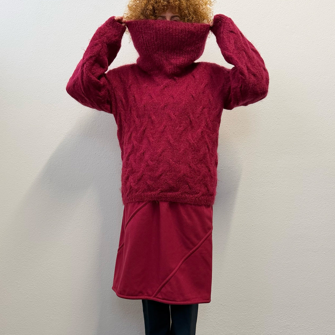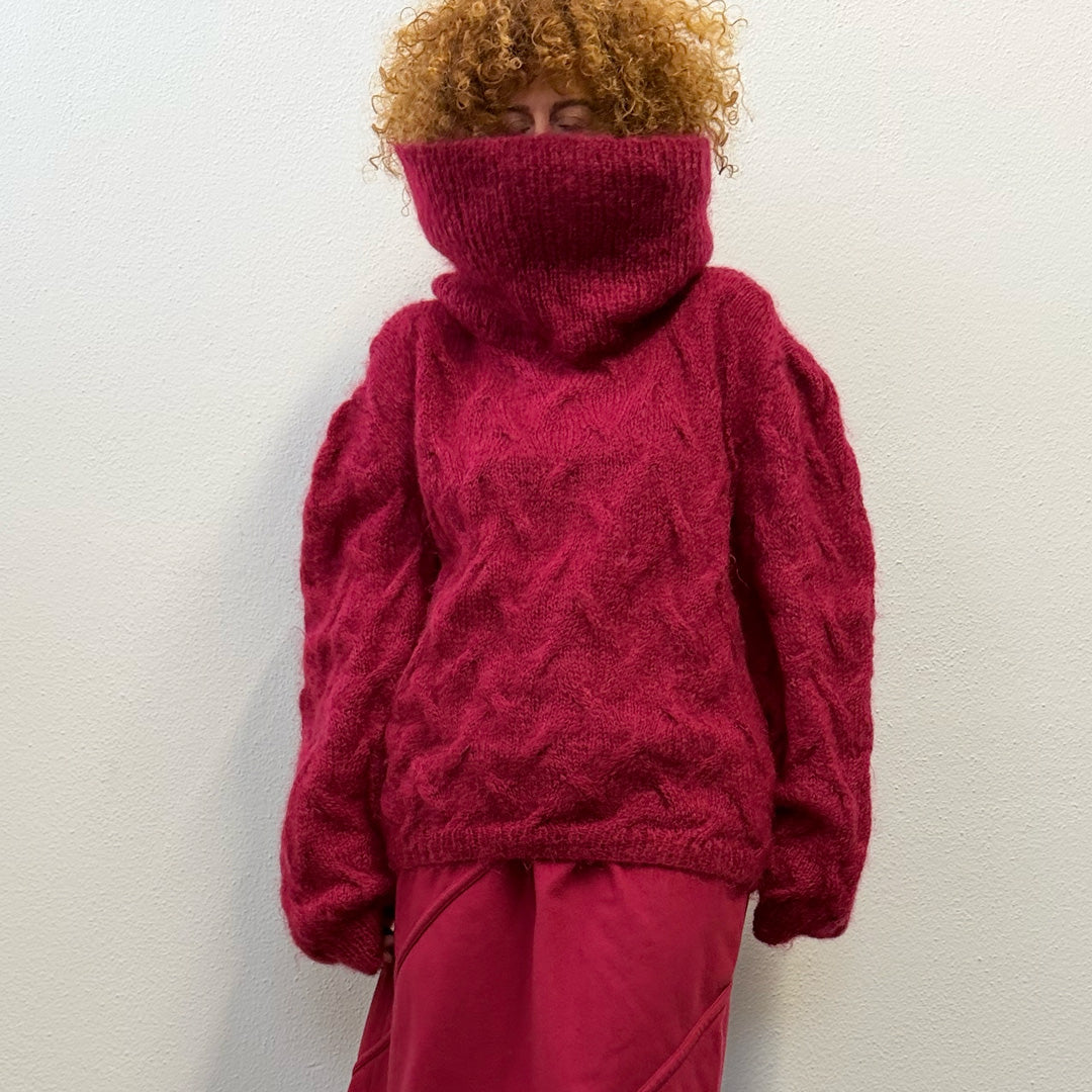 Maglione realizzato a mano, dal fascino autentico e senza tempo. Il collo alto e la lavorazione artigianale lo rendono un capo caldo e avvolgente, ideale per chi ama i pezzi unici.