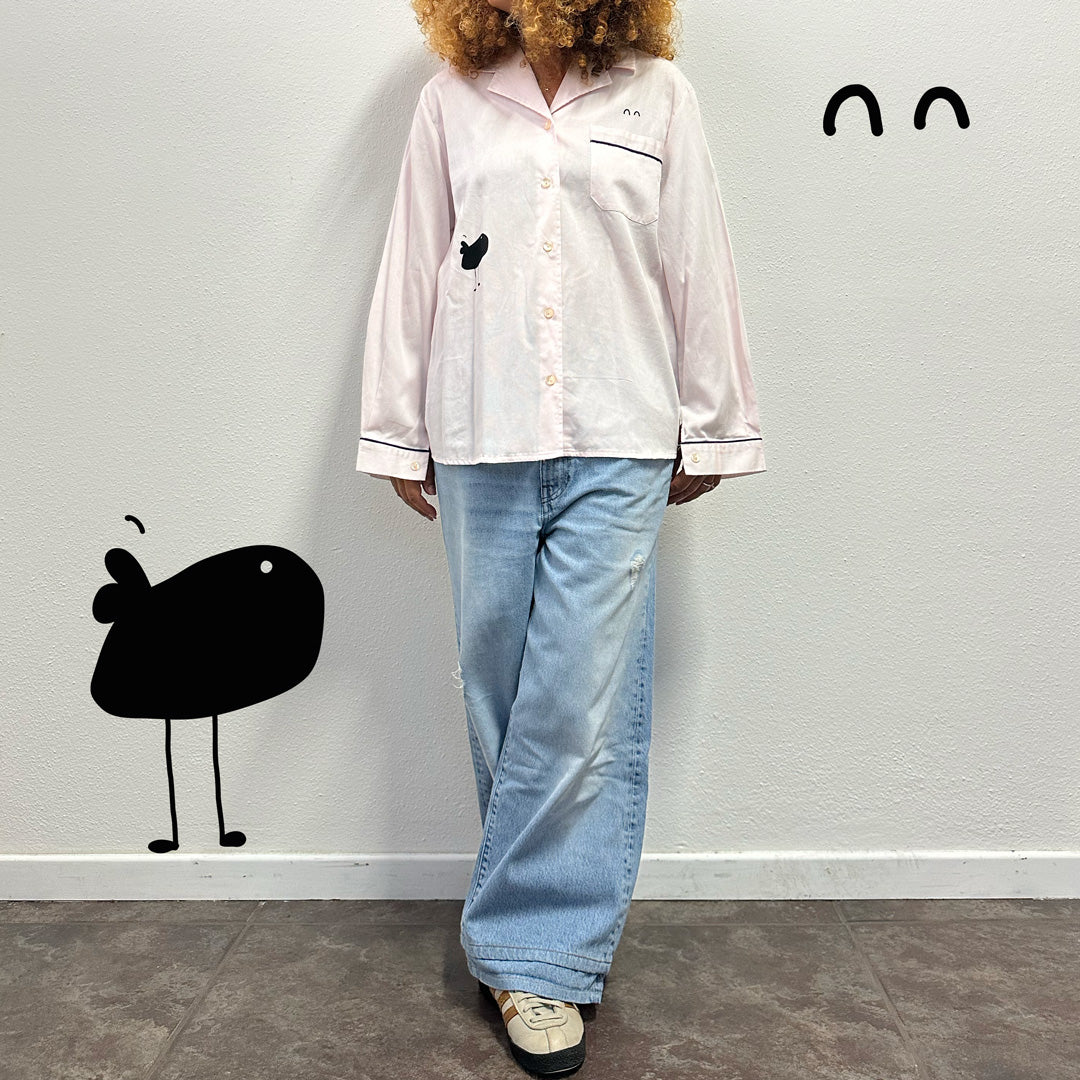 Camicia /slip anni novanta unica nel suo genere, realizzata in 100% cotone a costine con profili neri Il pezzo è impreziosito da una serigrafia originale fatta a mano dall’artista Gigi Tarantola tg XL e XXL