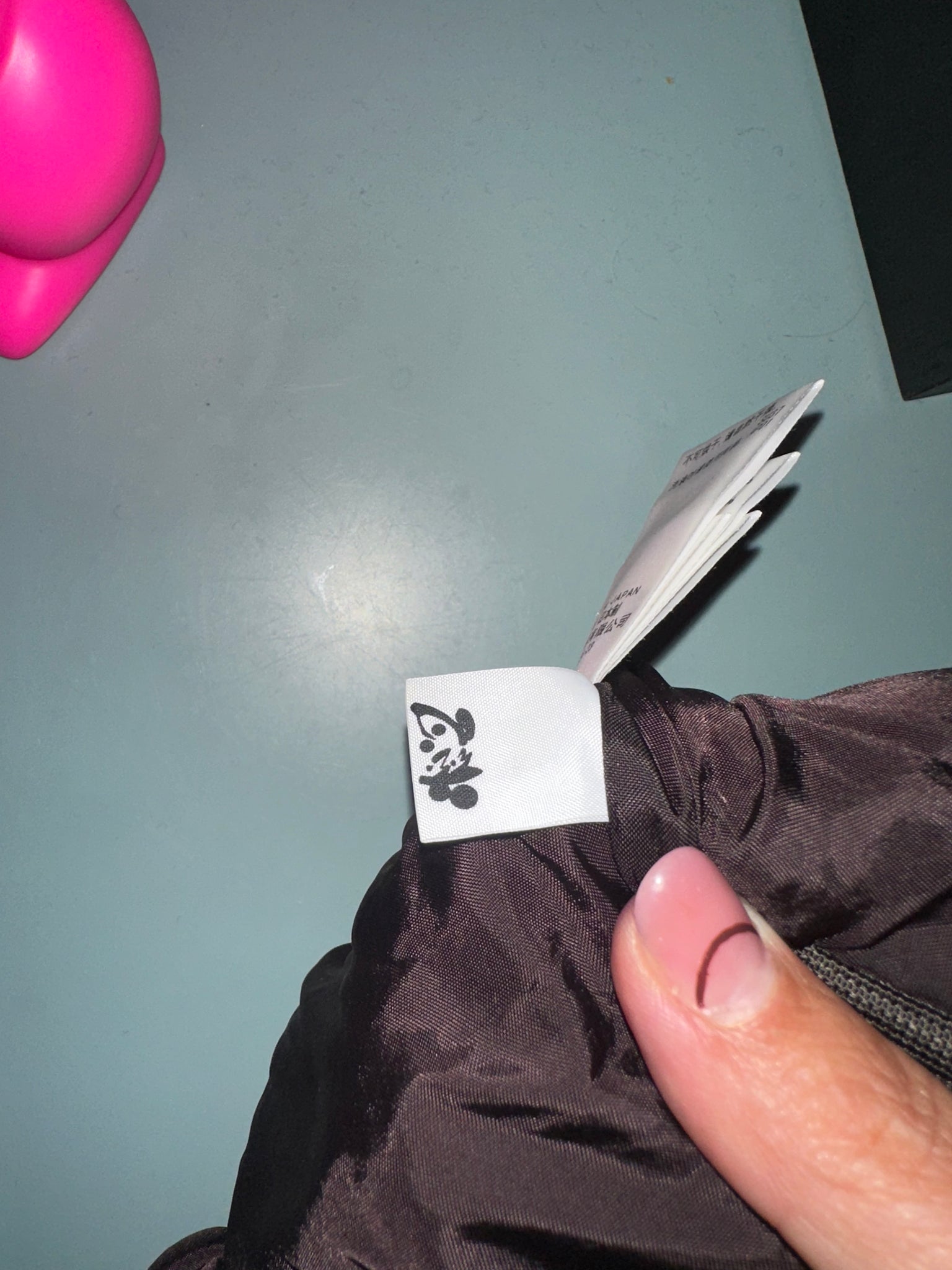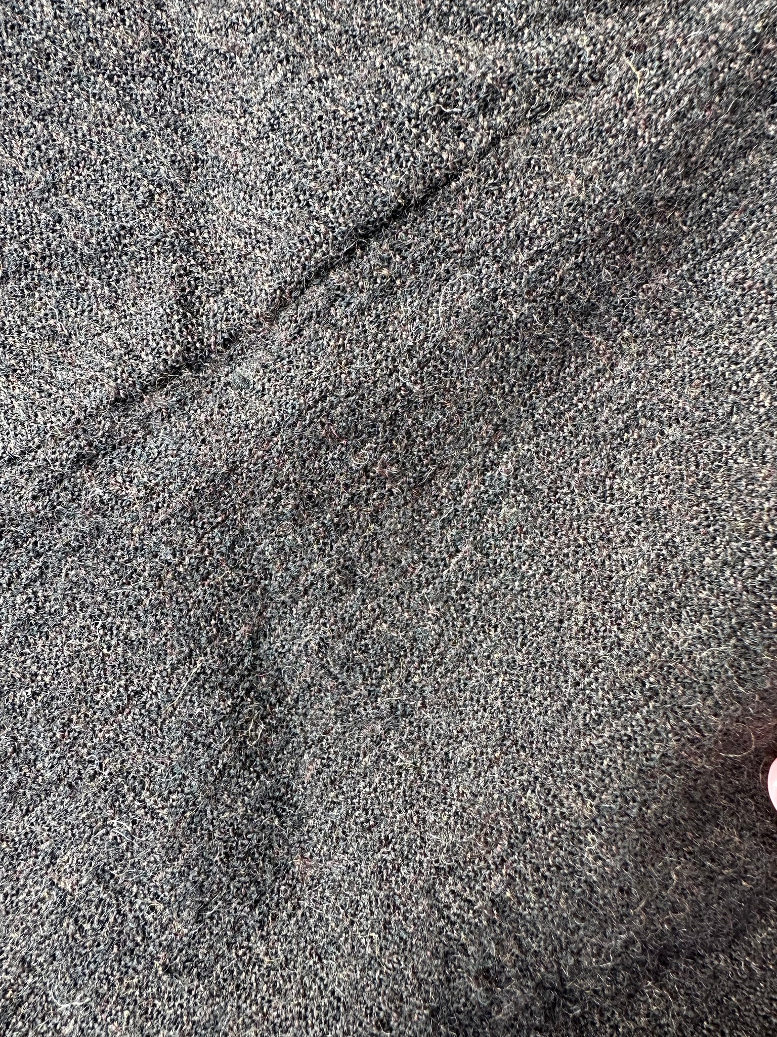 Colore marrone scuro melange, caratterizzato da un taglio particolare e contemporaneo.