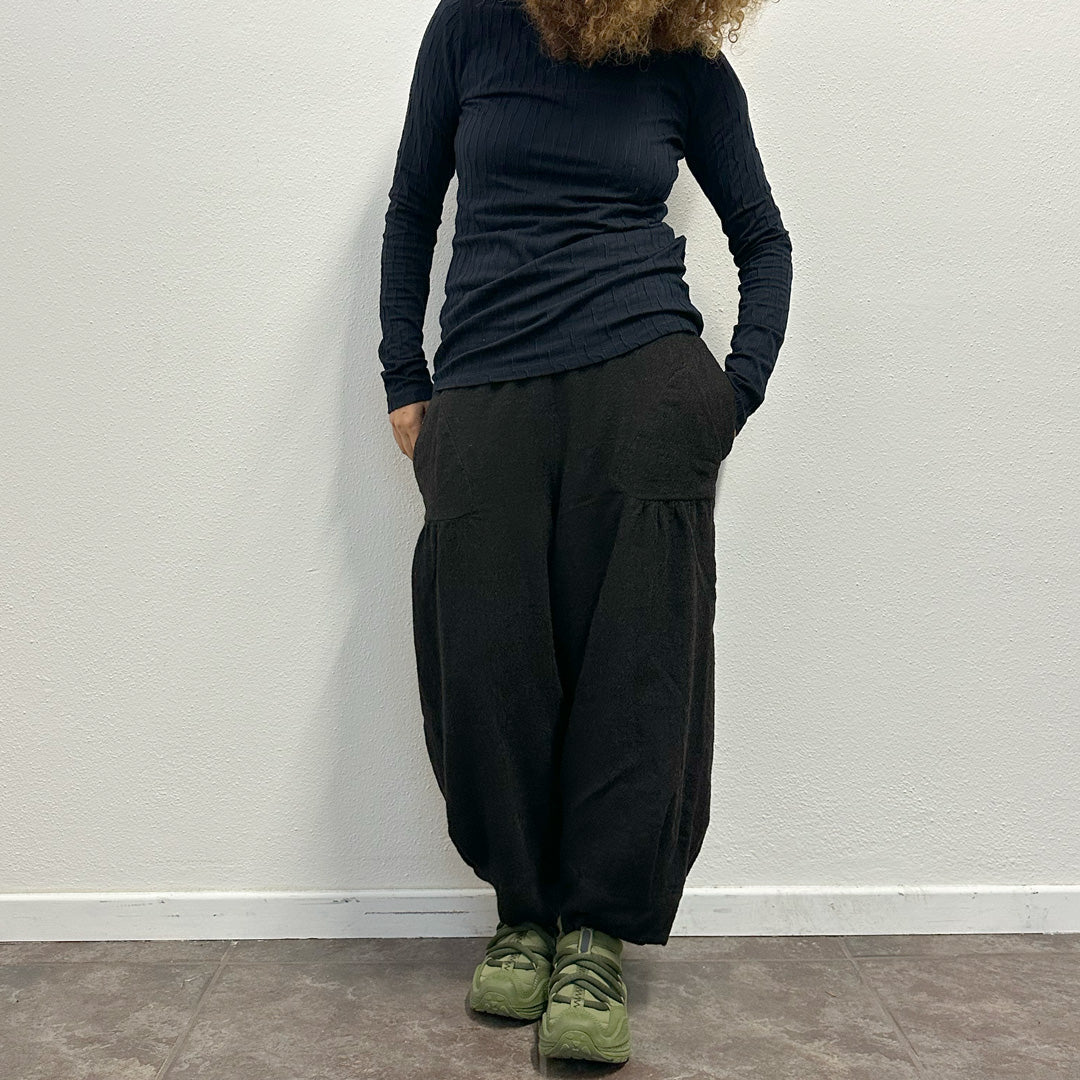 Un pantalone dallo stile raffinato e minimale, tipico della sartoria giapponese — perfetto per chi cerca qualità e carattere in un capo unico.