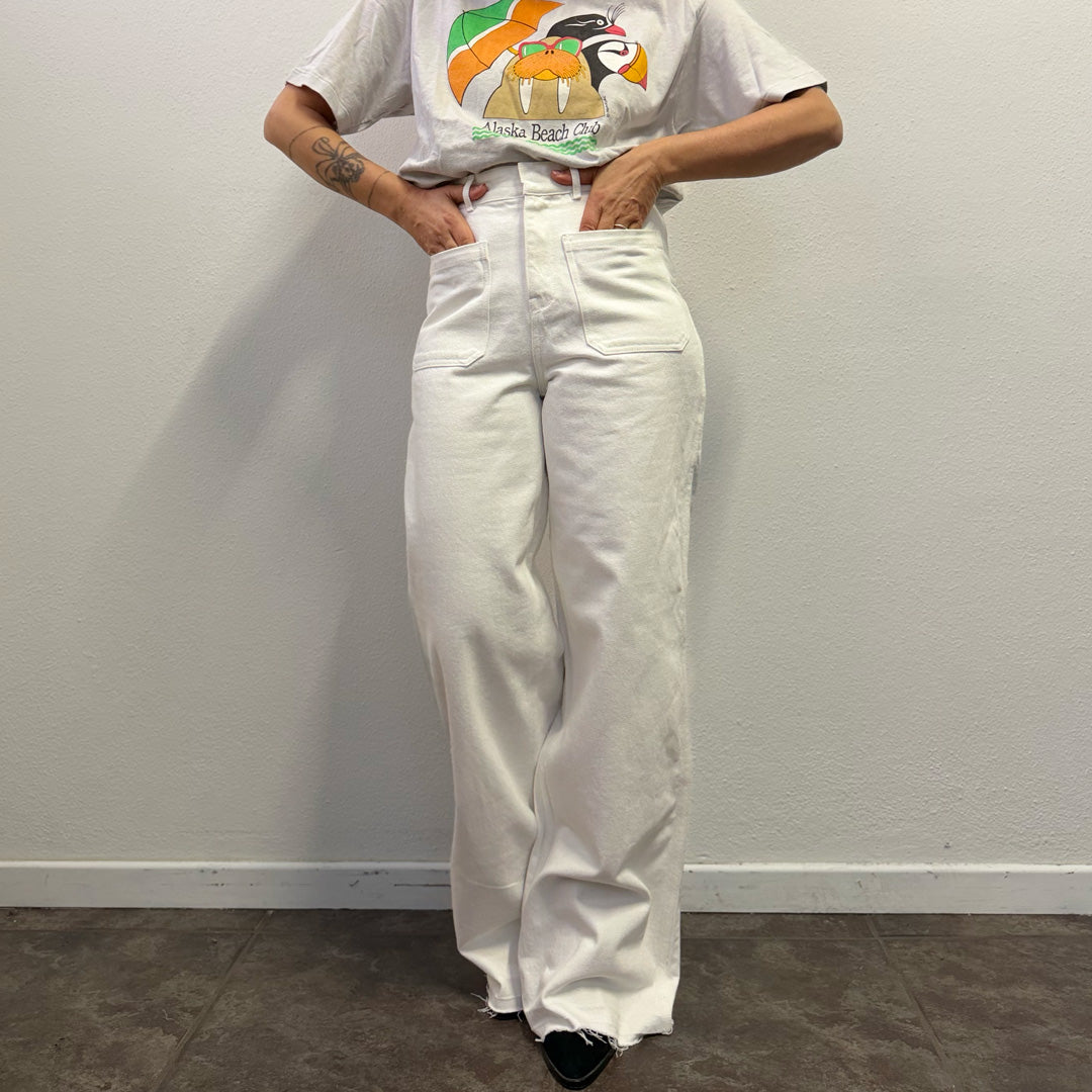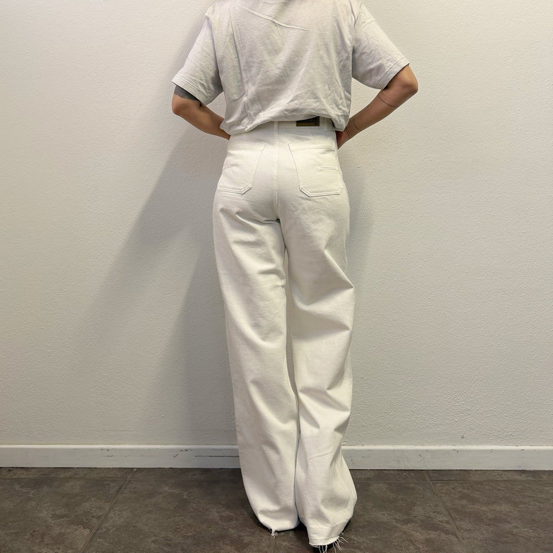 Denim Christian Dior privo di etichetta interna del brand, ma con tutte le caratteristiche di autenticità: punzonatura sul cursore, zip riri, cuciture e finiture conformi agli standard della maison.