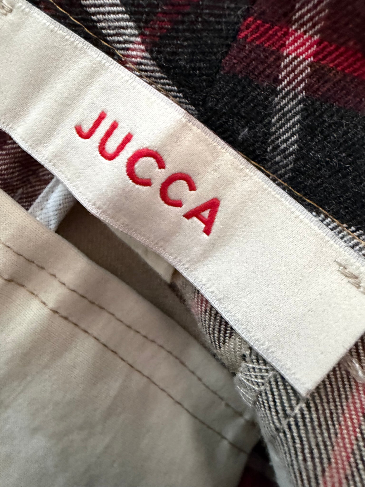 Pantalone check firmato Jucca, dal taglio elegante e contemporaneo.