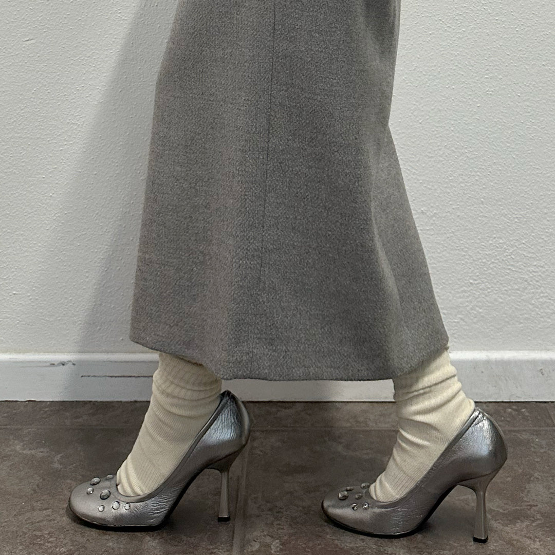 Iconiche décolleté Casadei in pelle argento, impreziosite da delicati punti luce che riflettono la luce con eleganza ad ogni movimento.